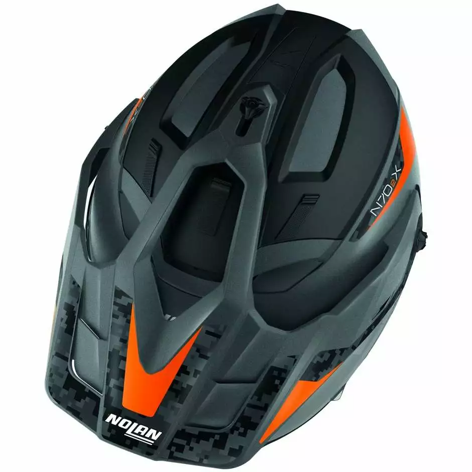 Es ist Nolans erstklassiger Straßen- und Offroad-Crossover, der erste On-Off-Helm auf dem Markt, der mit einem abnehmbaren Kinnschutz ausgestattet ist. Es zeichnet sich durch Offroad-inspiriertes Design, reichhaltige technische Funktionen und eine gute Verfügbarkeit von Farben und Grafiken aus.Geringes Volumen (dank der Verfügbarkeit von zwei Außenschalengrößen), doppelte P/J-Homologation, Ultrawide-Visier, besonders großes Bullauge kompatibel mit der Verwendung der Maske (auch bei montiertem und geöffnetem Visier), VPS-Sonnenschutz (in verschiedenen Positionen verstellbar .) und ausgestattet mit automatischem Rückrufsystem), AirBooster Technology oberes Belüftungssystem, Microlock2-Doppelhebel-Rückhaltesystem mit mikrometrischer Einstellung, innovative Clima Comfort-Innenkomfortpolsterung (mit mikroperforierten Stoffen und verstellbarer Nackenrolle) und Vorkehrung für das Kommunikationssystem N-Com möchten machen die N70-2 X zum Referenz-Crossover für die anspruchsvollsten Touristenmotorräder.
