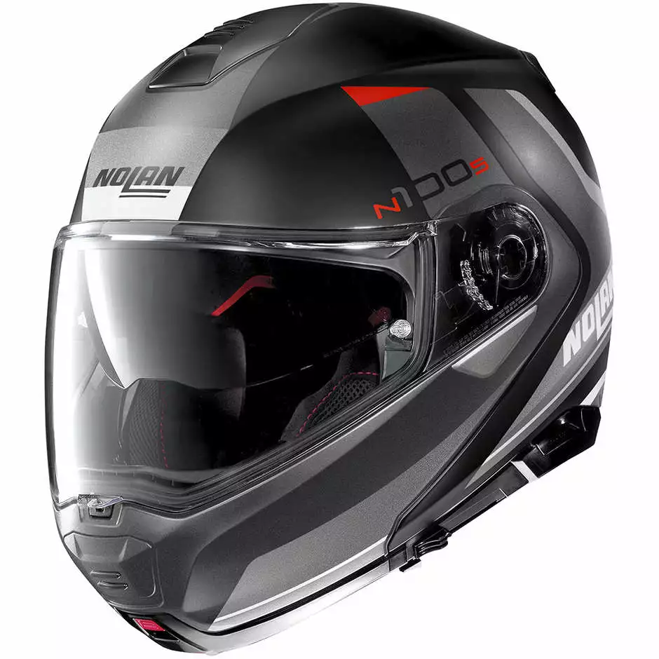 Es ist Nolans Top-Flip-Up. Kleines Volumen, doppelte P / J-Homologation, ultraweites Visier, VPS-Sonnenschutz, oberes Belüftungssystem der AirBooster-Technologie, Rotationsbewegung des Kinnschutzes mit elliptischer Flugbahn, exklusives Kinnschutzöffnungssystem mit doppeltem Wirkmechanismus, Rückhaltesystem mit mikrometrischer Einstellung mit Doppelhebel Microlock 2 Die innovative interne Komfortpolsterung von Clima Comfort und die Veranlagung für das N-Com-Kommunikationssystem machen den N100-5 selbst bei den anspruchsvollsten Motorradtouristen zu einem sehr beliebten Produkt.