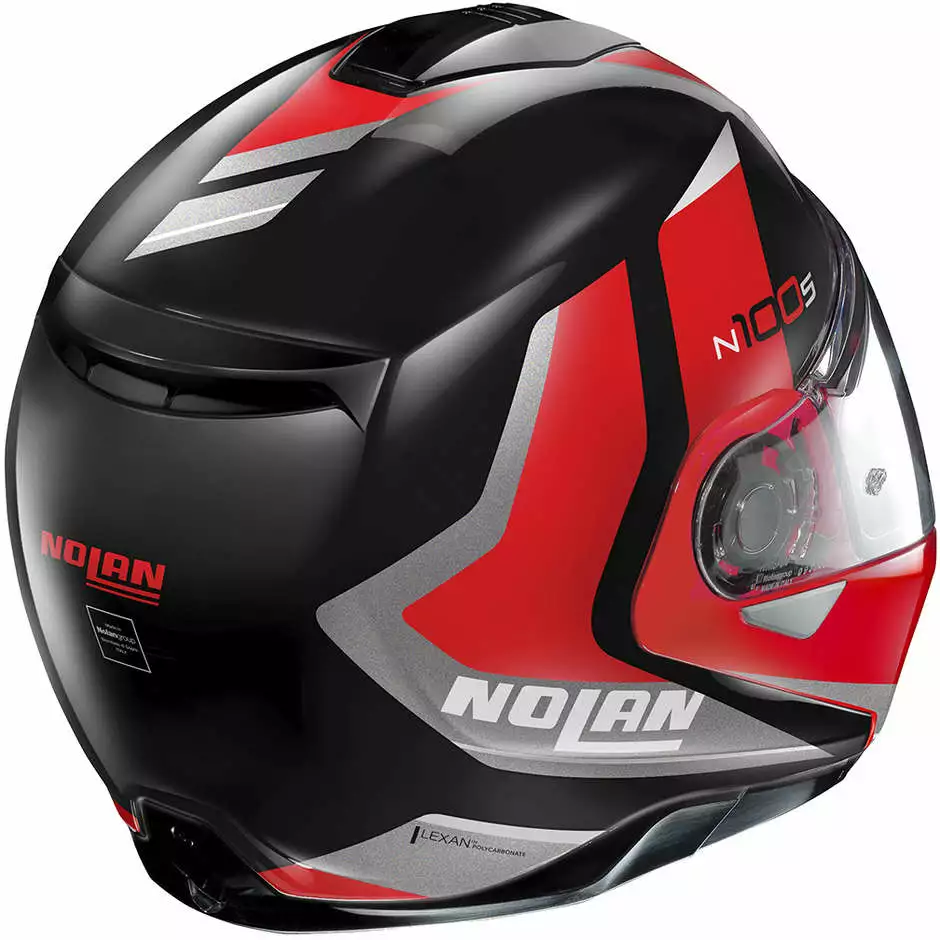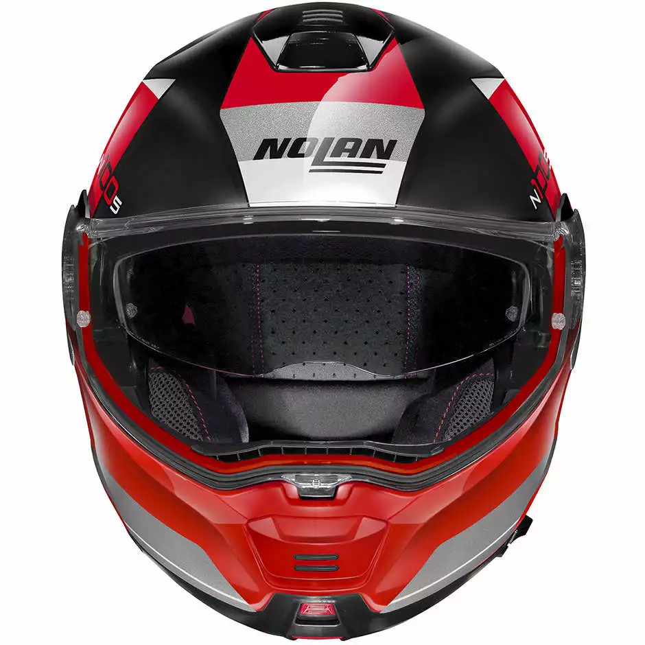 Es ist Nolans Top-Flip-Up. Kleines Volumen, doppelte P / J-Homologation, ultraweites Visier, VPS-Sonnenschutz, oberes Belüftungssystem der AirBooster-Technologie, Rotationsbewegung des Kinnschutzes mit elliptischer Flugbahn, exklusives Kinnschutzöffnungssystem mit doppeltem Wirkmechanismus, Rückhaltesystem mit mikrometrischer Einstellung mit Doppelhebel Microlock 2 Die innovative interne Komfortpolsterung von Clima Comfort und die Veranlagung für das N-Com-Kommunikationssystem machen den N100-5 selbst bei den anspruchsvollsten Motorradtouristen zu einem sehr beliebten Produkt.