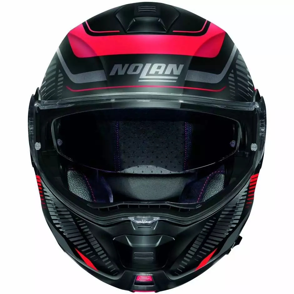 Es ist die neue und exklusivste Version von Nolans Spitzenmodell des Flip-Ups, jetzt angereichert mit der Clima Comfort-Innenkomfortpolsterung mit innovativer Mesh-Konstruktion und dem Kopfhörerpositions-Einstellsystem (LPC Liner Positioning Control).