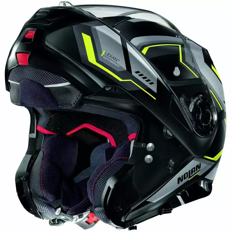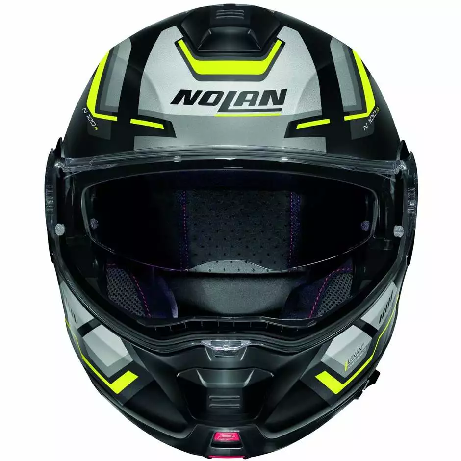 Es ist Nolans Top-of-the-Range-Flip-Up. Kleines Volumen, doppelte P / J-Homologation, Ultrawide-Visier, VPS-Sonnenschutz, AirBooster-Technologie oberes Belüftungssystem, Rotationsbewegung des Kinnschutzes mit elliptischer Flugbahn, exklusives Kinnschutz-Öffnungssystem mit Double-Action-Mechanismus, Haltesystem mit mikrometrischer Einstellung mit Doppelhebel Microlock 2 , innovative Clima Comfort-Innenkomfortpolsterung und die Vorbereitung für das N-Com-Kommunikationssystem machen N100-5 zu einem sehr beliebten Produkt auch bei den anspruchsvollsten Motorradtouristen.