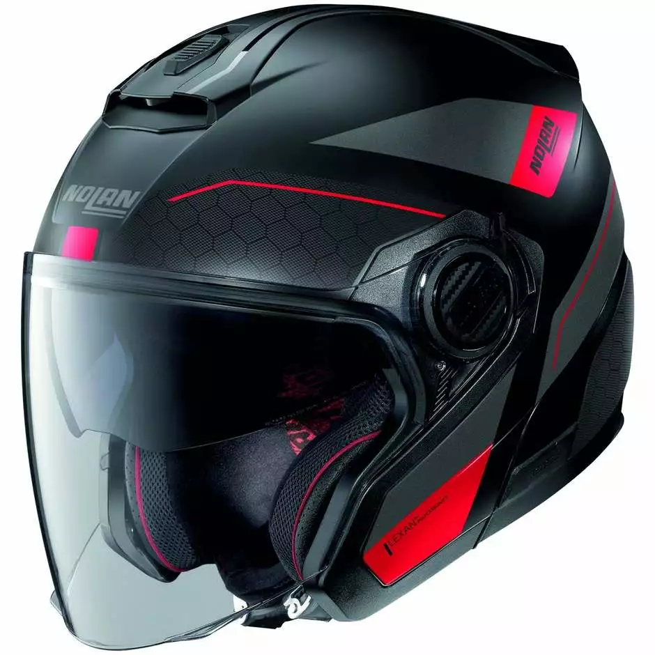 Und der neue Nolan Jet, eine Neugestaltung des N40, die die bereits geschätzten technischen Eigenschaften bestätigt und den oberen Lufteinlass, den Schirm, die Sperrklinken und die innere Komfortpolsterung Clima Comfort erneuert. Ultrawide-Visier, VPS-Sonnenschutz (in verschiedenen Positionen einstellbar), oberes Belüftungssystem AirBooster Technology, Schirm (je nach Segment erhältlich – gekennzeichnet durch eine auf das Visier abgestimmte Bewegung) und Vorbereitung für das N-Com-Kommunikationssystem N405 ein interessanter Jet in sowohl im Roller- als auch im Motorradbereich.
