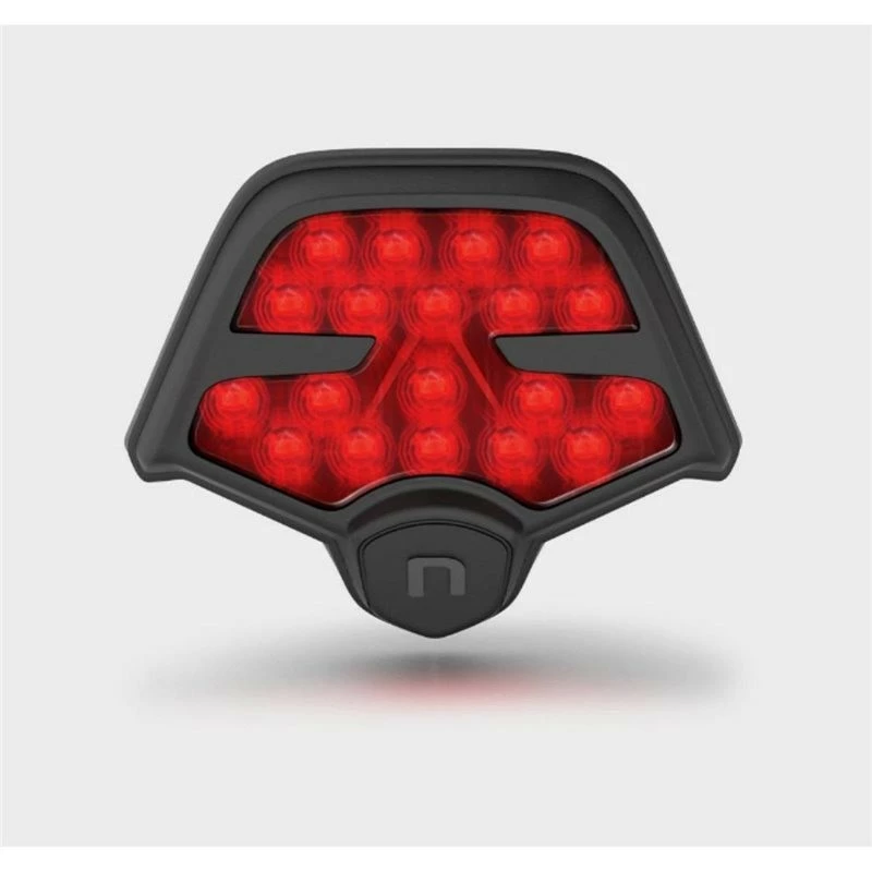 - Notbremslichtfunktion: Signalisierung mit stark intermittierendem LED-Licht der starken Verzögerungen des Helms